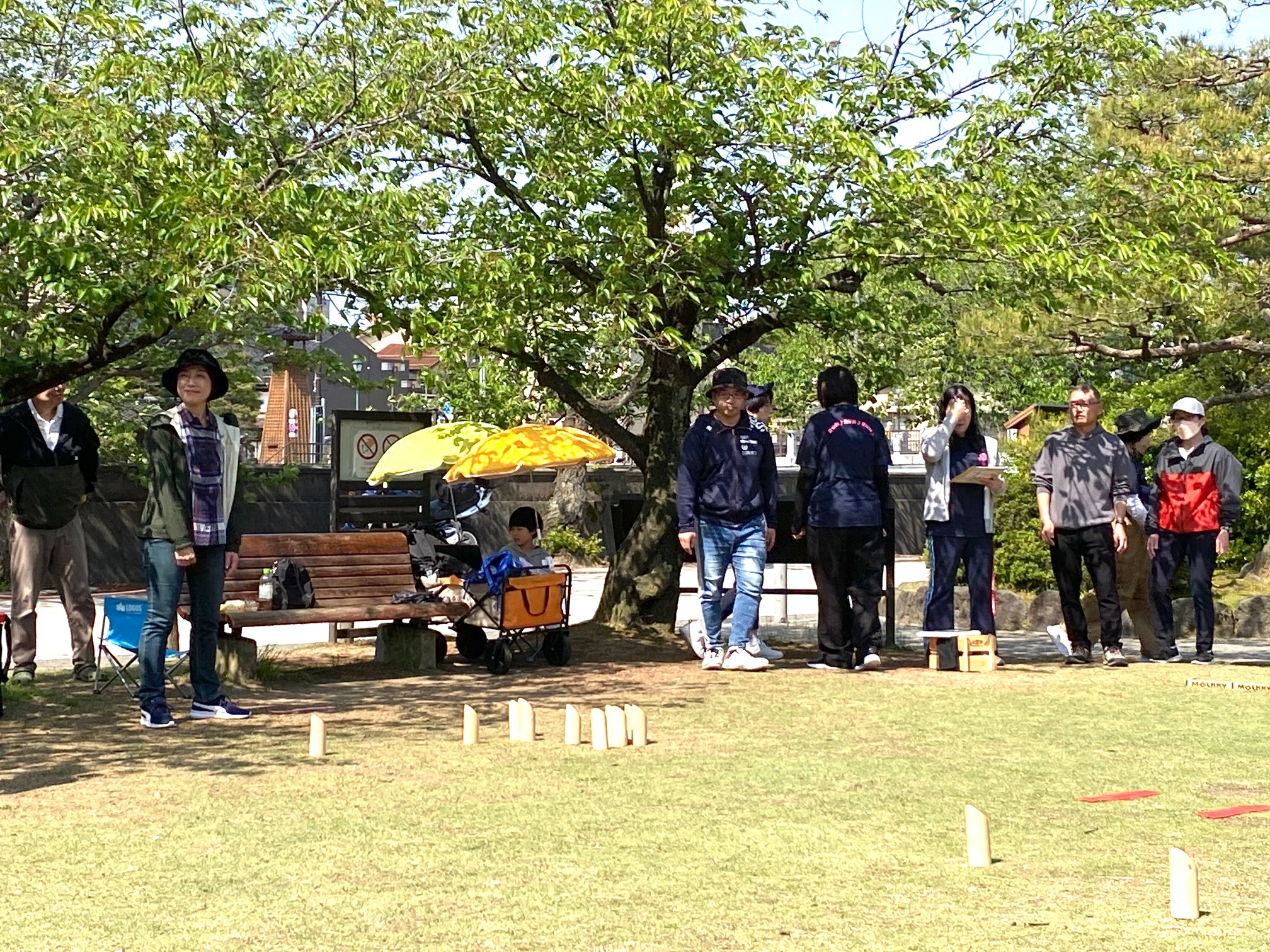 私たちは10年前から金沢市内の公園で仲間とモルックを楽しんでいます。